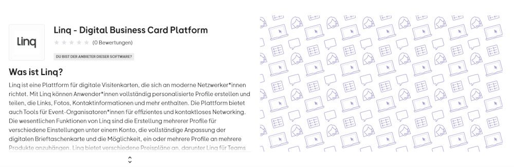 Linq ist eine innovative digitale Visitenkarten-App, die den Schwerpunkt auf Individualisierung und moderne Technologien legt. Mit Linq können Nutzer nicht nur ansprechende digitale Visitenkarten gestalten, sondern diese auch in NFC-fähige physische Karten integrieren. Über die intuitive App können Kontaktdaten einfach geteilt werden, und dank umfangreicher Analysen haben Sie immer im Blick, wie und wo Ihre Visitenkarte geteilt wurde. Die Grundfunktionen sind kostenlos, während Premium-Funktionen wie Branding-Optionen und API-Integrationen in Plänen ab 5 $/Monat erhältlich sind. Linq bietet zudem attraktive Business-Lösungen für Teams und Unternehmen.