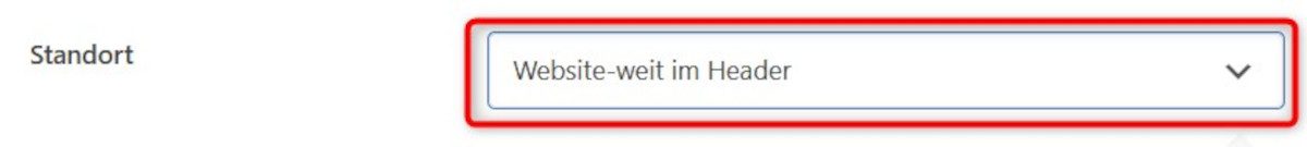 Unterhalb des Eingabefensters finden Sie bei Standort schon Website-weit im Header voreingestellt. Diese Option ist die richtige für Code, der bei jedem Aufruf einer Seite ausgespielt werden soll.