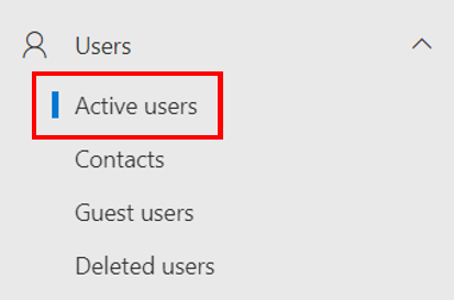 - Under Users on the far left, select Active Users. You will now see a list of all users.