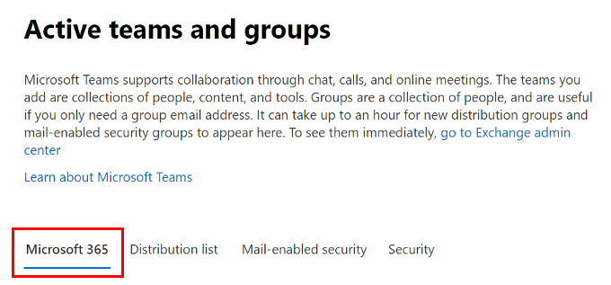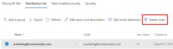 - Repeat this process with the other sections (distribution list, email-enabled security, and security) until all teams or groups using your domain have been deleted.