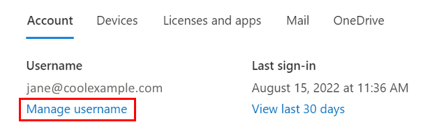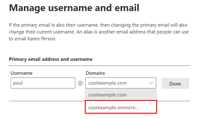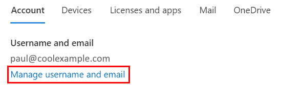 4.2.7 Select Manage username and email. An alias should appear for the domain you want to remove from Microsoft 365.