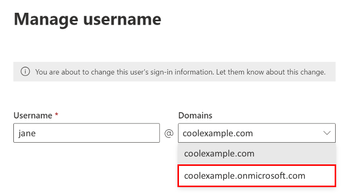 4.1.3. Select Save changes. If you were logged in as a user, you will be logged out. Please log in again with your new user name via the onmicrosoft.com domain.
