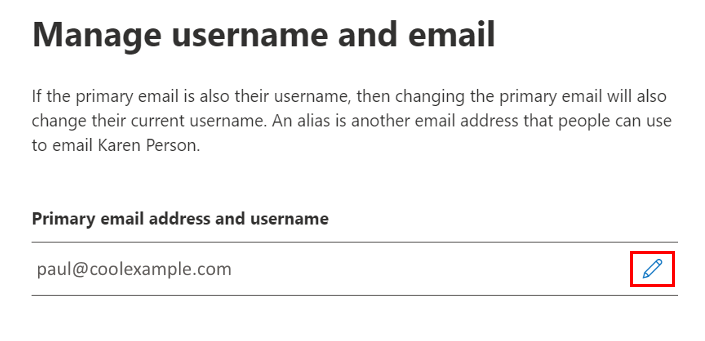 4.2.2 Wählen Sie neben Primäre E-Mail-Adresse und BenutzernameBleistift-Symbol Bearbeiten.