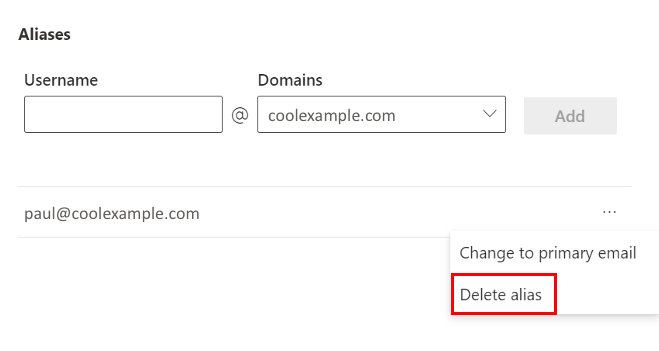 4.2.8 Select Options next to the alias icon with three dots, then select Delete alias.